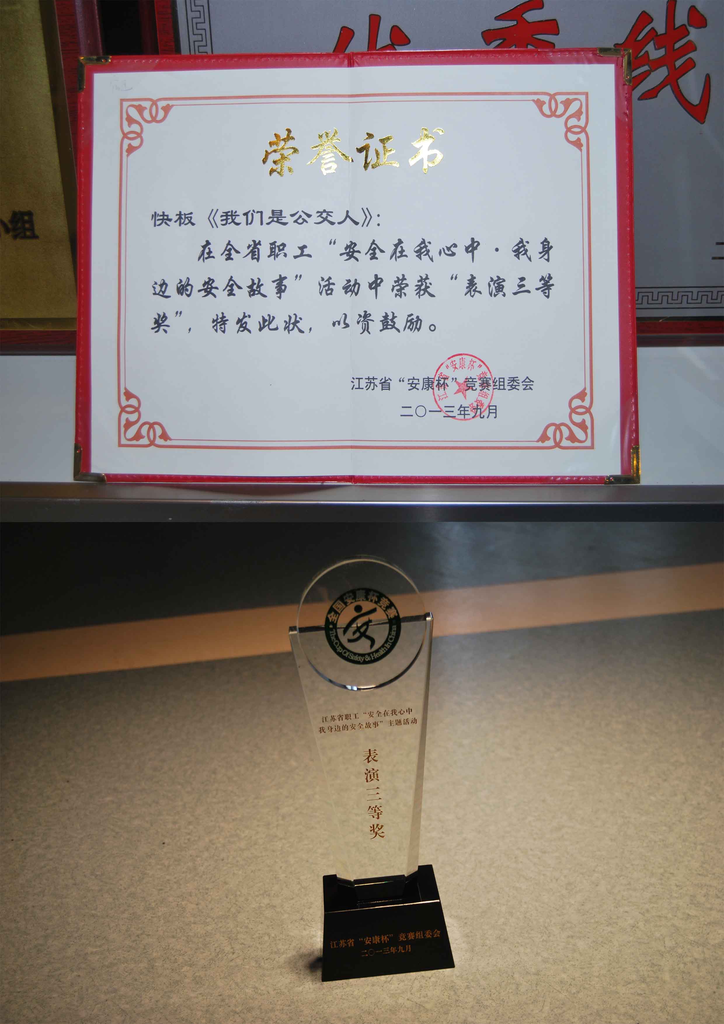 我們是公交人榮獲全省職工安全在我心中我身邊表演三等獎