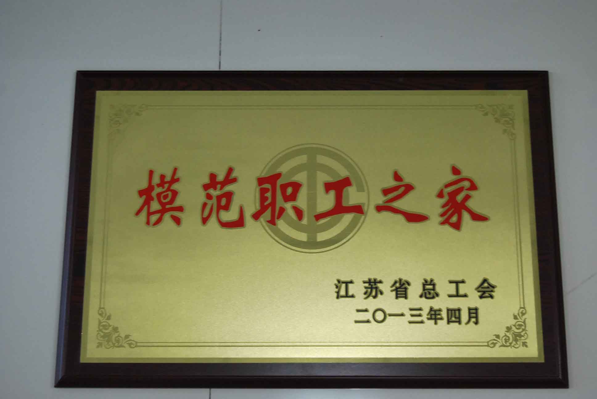 公司榮獲江蘇省職工之家稱號(hào)