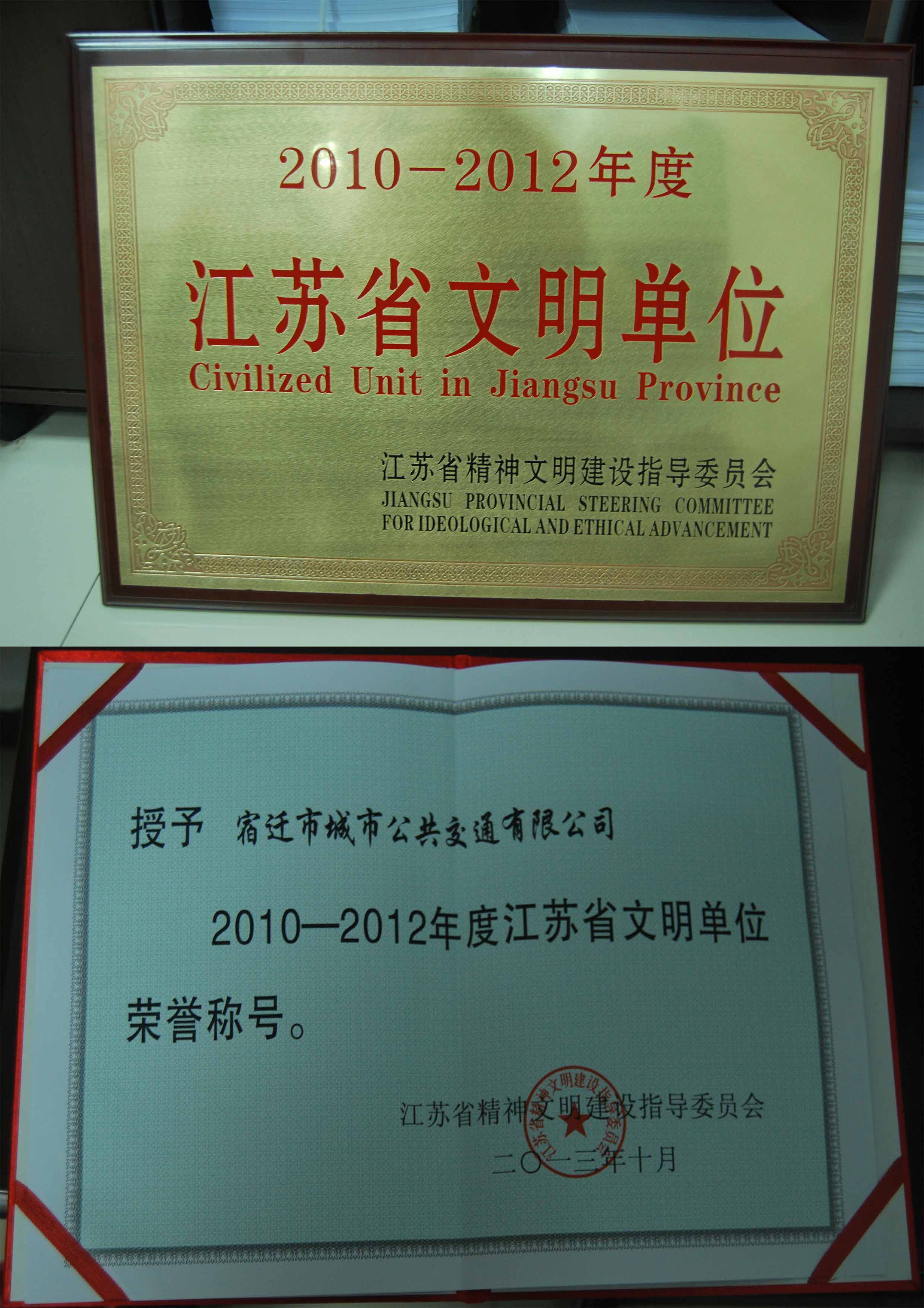 公司榮獲2010-2012年江蘇省文明單位稱號(hào)
