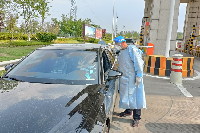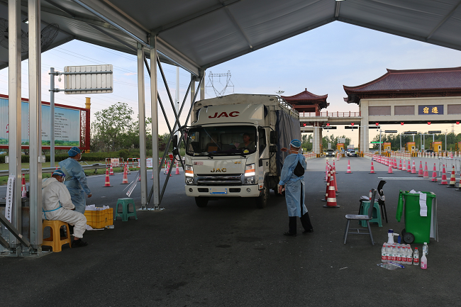 中午12點(diǎn)整,陸彬進(jìn)入指定位置,開始今天的執(zhí)勤工作。疫情防控進(jìn)入常態(tài)化后,執(zhí)勤工作的重心調(diào)整為嚴(yán)密排查貨運(yùn)車輛和高風(fēng)險(xiǎn)地區(qū)來宿車輛。雖然不必再像執(zhí)勤前期那樣逐一檢查過往車輛的健康碼、行車碼和48小時內(nèi)核酸檢測證明,但為織實(shí)織密疫情防控網(wǎng),杜絕漏查、誤查情況發(fā)生,陸彬要在6個小時的執(zhí)勤時間里盯緊收費(fèi)站出入口,嚴(yán)防因車輛監(jiān)查系統(tǒng)失誤讓高風(fēng)險(xiǎn)地區(qū)車輛越過“紅線”進(jìn)入宿遷市。
