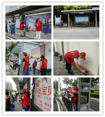 此次活動(dòng)將志愿者分為2組,一組在公司各調(diào)度站進(jìn)行場(chǎng)站內(nèi)衛(wèi)生清除,志愿者們手拿掃把和夾子,對(duì)各站點(diǎn)辦公區(qū)域、停車場(chǎng)地、駕駛員休息區(qū)域衛(wèi)生進(jìn)行保潔。一組在市區(qū)人流量較大的候車亭,志愿者們戴著小紅帽,拿著鏟子和抹布,拎著水桶,對(duì)候車亭認(rèn)真擦洗,經(jīng)過一上午的辛勤勞動(dòng),被志愿者清洗過的公交候車亭煥然一新。
