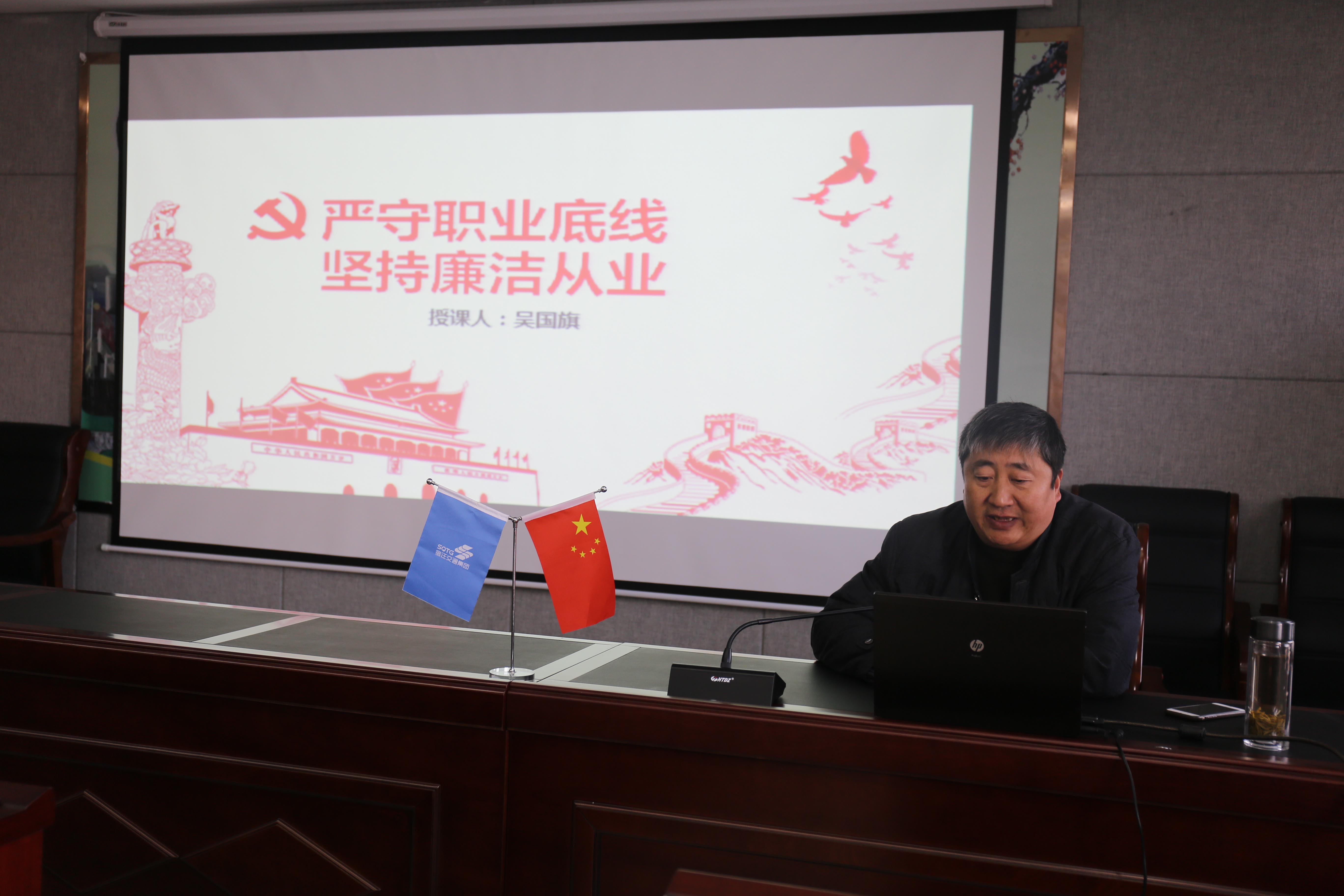 此次廉政黨課以《嚴(yán)守職業(yè)底線,堅(jiān)持廉潔從業(yè)》為題,重點(diǎn)圍繞四個(gè)方面講述:一是認(rèn)識新形勢反腐敗斗爭的形勢;二是腐敗出現(xiàn)的原因和防范措施;三是學(xué)習(xí)連接法律法規(guī),防范廉潔風(fēng)險(xiǎn);四是增強(qiáng)黨員領(lǐng)導(dǎo)干部拒腐防變的能力。課上用深入淺出、通俗易懂的語言,把黨風(fēng)廉政建設(shè)的道理與國企工作的實(shí)際緊密結(jié)合起來,給支部全體黨員上了生動的一課。