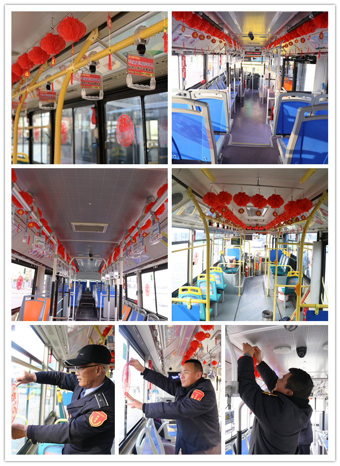 為讓乘客在舒適溫馨的車廂內(nèi)感受到新年氛圍,2月1日市公交公司黨員干部職工和駕駛員師傅們利用業(yè)余時(shí)間親自用具有中國(guó)傳統(tǒng)節(jié)日氣氛的裝飾品裝扮公交車廂。此次活動(dòng)公交公司選擇途徑市區(qū)客流量較大的102路、302路、304路、311路和游2路5條線路。經(jīng)過(guò)一天緊鑼密鼓的忙活,線路所有公交車廂都被裝扮得喜氣洋洋,年味十足,使乘客們步入車內(nèi)就感受到過(guò)節(jié)的氣氛。車廂經(jīng)過(guò)精心布置,既烘托了年味,又為乘客帶來(lái)了好心情,公交公司希望能讓廣大市民和乘客感受到濃厚的節(jié)日氛圍,也希望能夠讓即將踏上歸途的返鄉(xiāng)人感受到新年的熱鬧和溫暖。