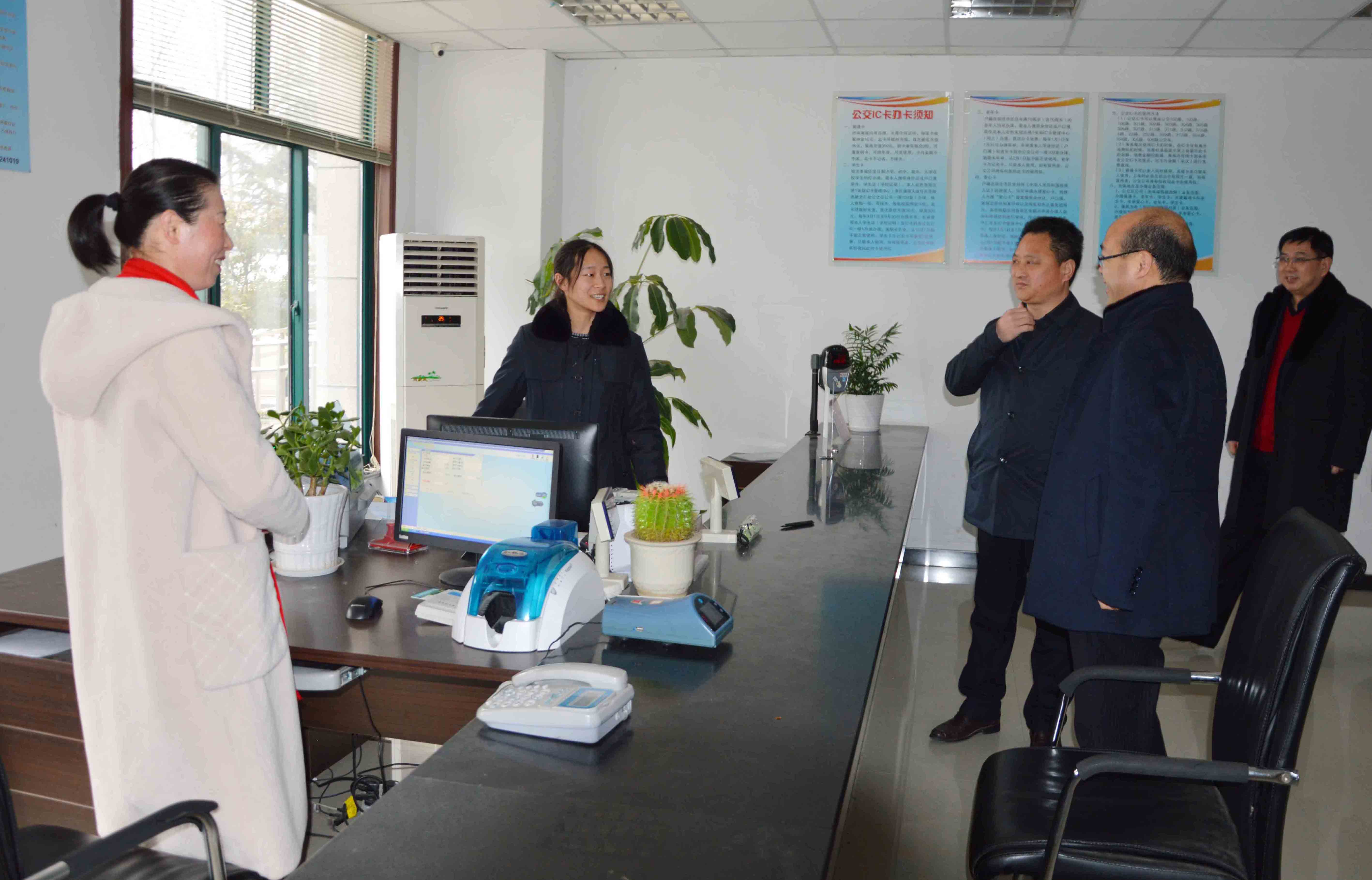 圖為:劉飛總經(jīng)理一行在公交收銀中心