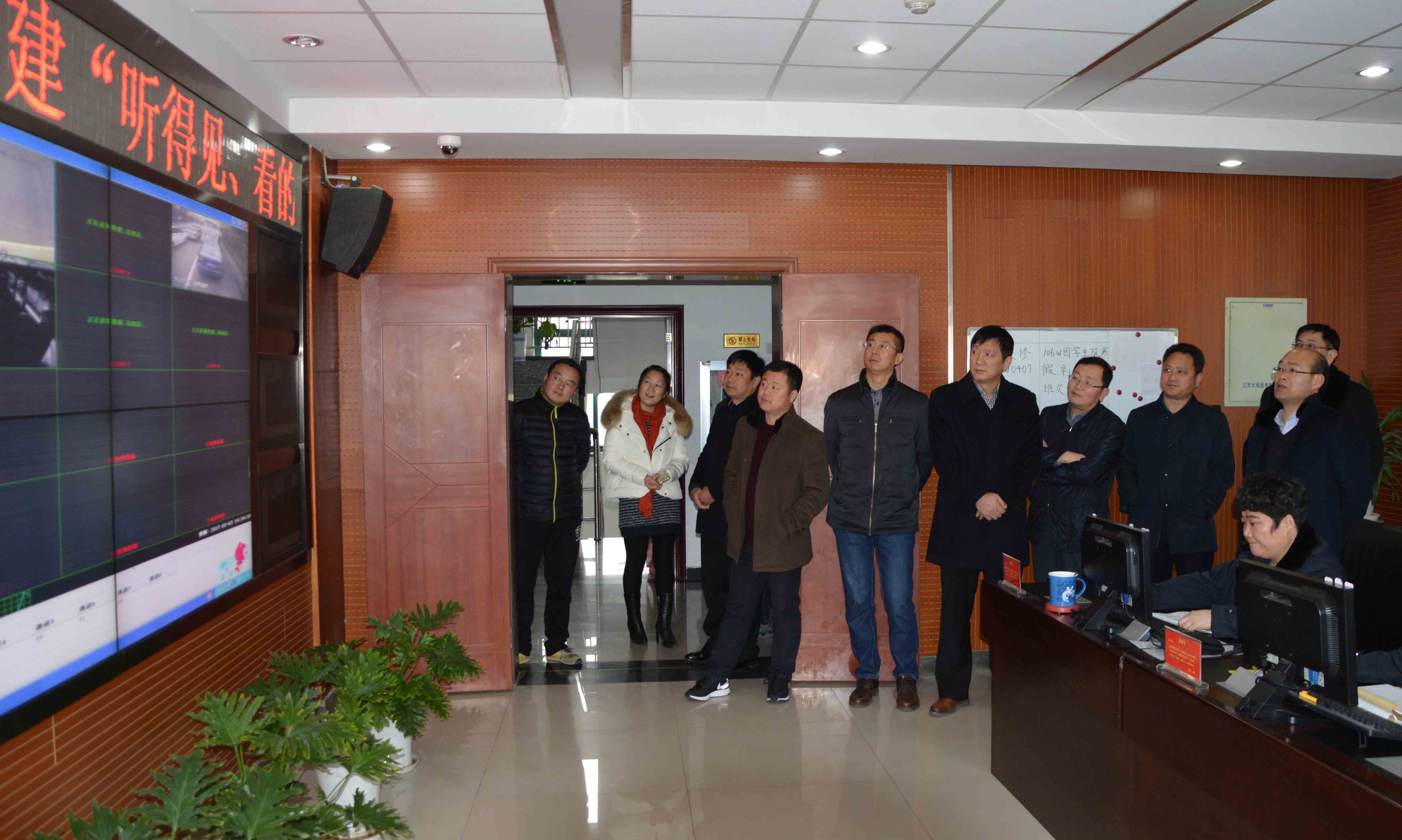 圖為:劉飛總經(jīng)理一行在公交監(jiān)控中心