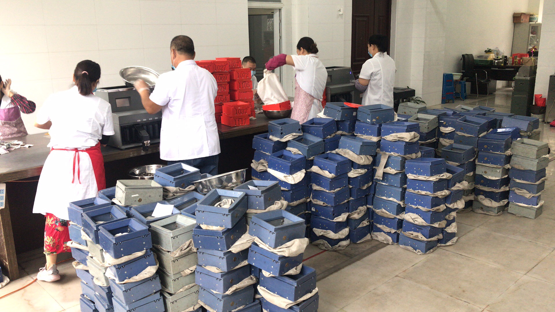 走進公司一樓,還沒有靠近點鈔室就可以聽到硬幣碰撞的聲音不絕于耳。進入點鈔室可以聞到滿屋的金屬和紙幣的異味。同時,伴著點鈔機的運轉聲,點鈔員們繁忙的工作景象也展現(xiàn)在眼前。幾名工作人員將錢膽里的零鈔、硬幣全部倒進盆里,從中篩選紙幣清點金額,再由機器清點剩余的硬幣。清理完的錢箱內膽再次翻倒過來查看是否還有余錢,然后將空箱擺放整齊供下午使用。